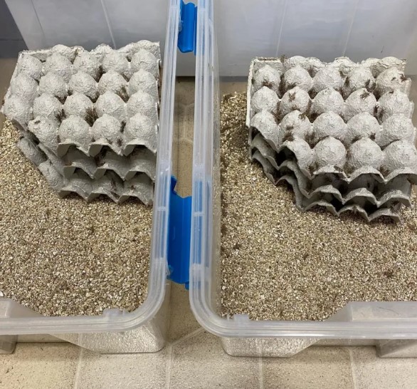 - After a few days, remove the egg container and place it in a warm, humid area for incubation.